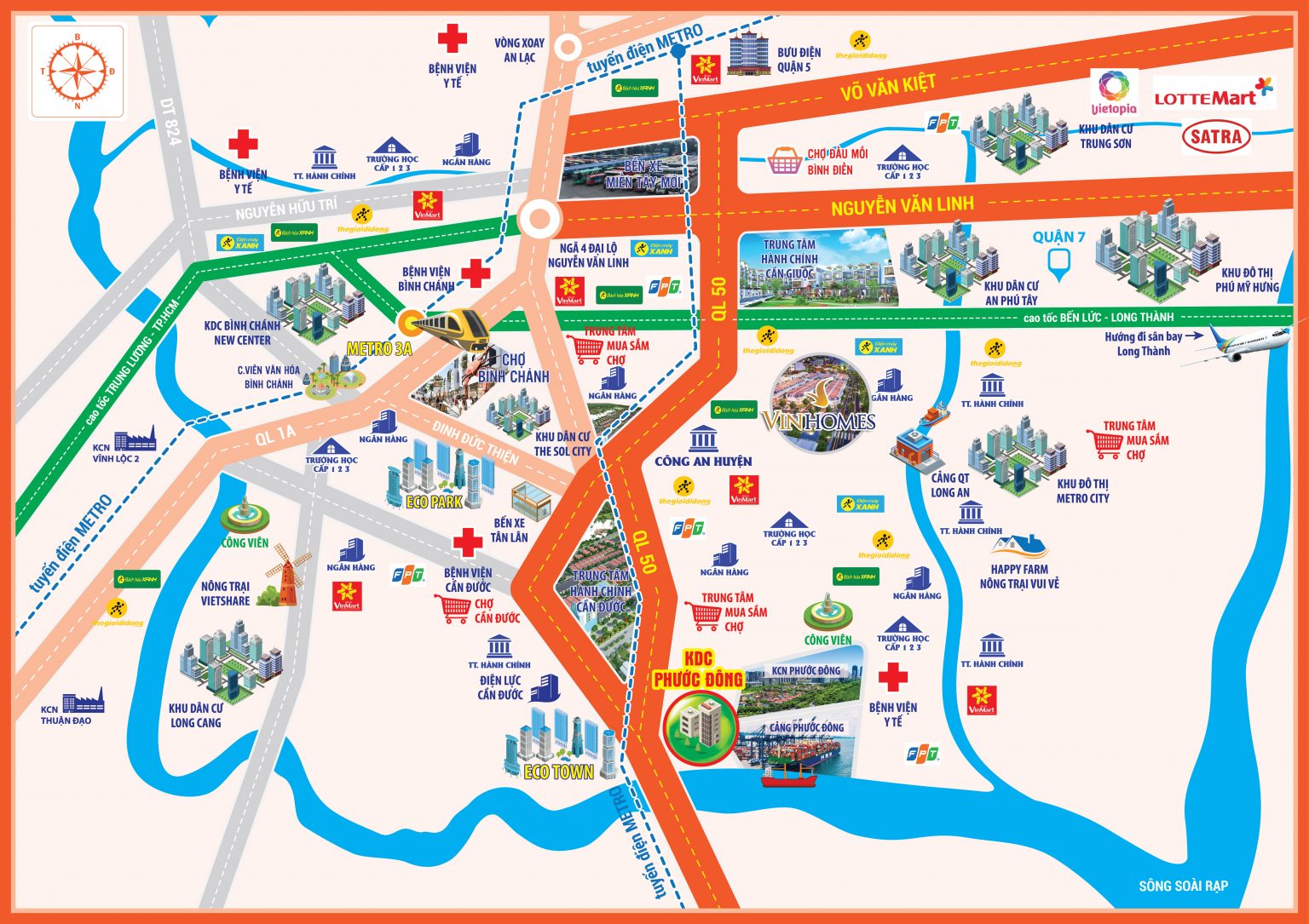 Từ Dự án Phước Đông Riverside dễ dàng kết nối và di chuyển tiện ích ngoại khu sầm uất nhất khu vực: