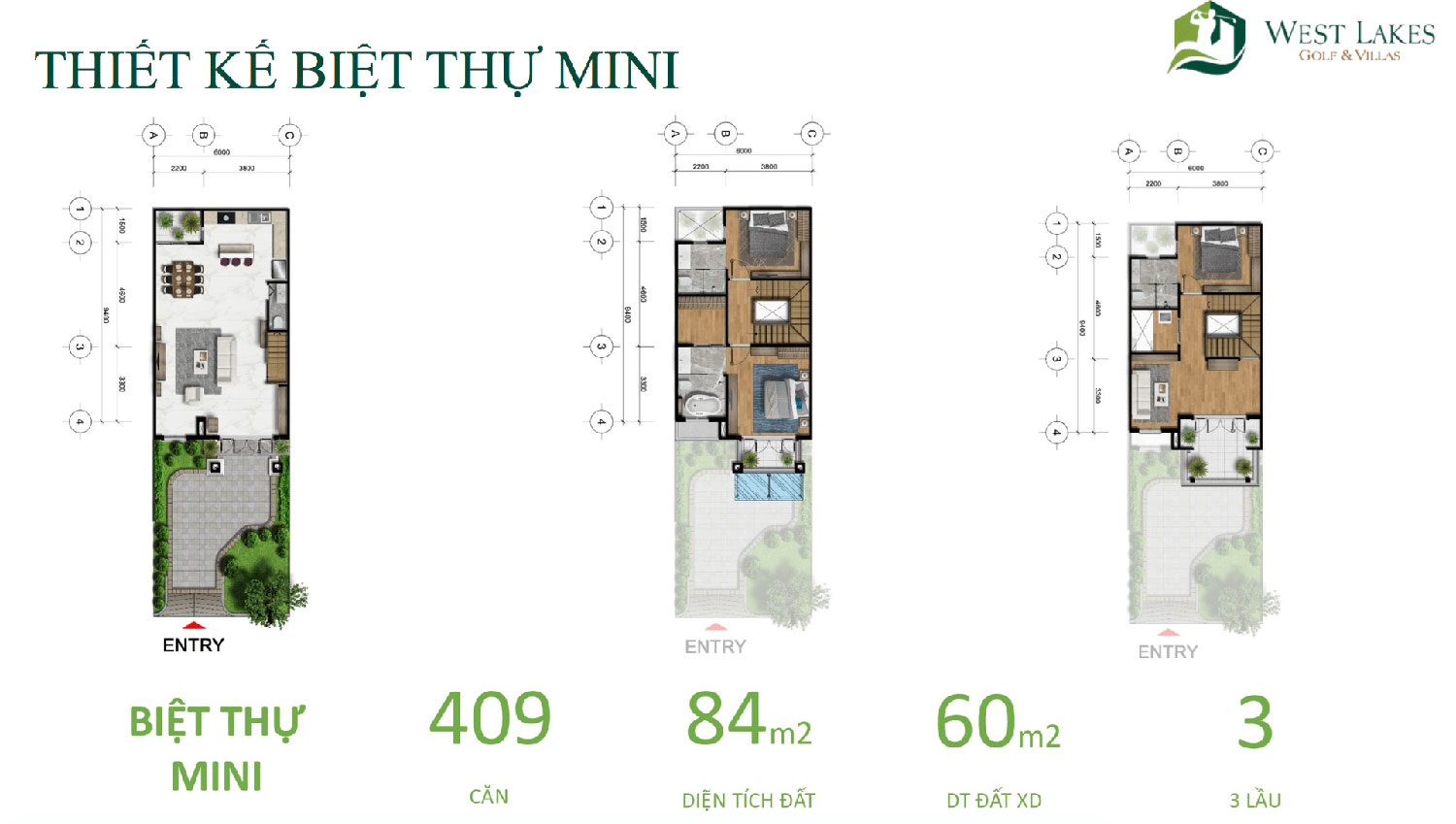 ╴Loại hình sản phẩm: biệt thự mini, biệt thự đơn lập, biệt thự song lập