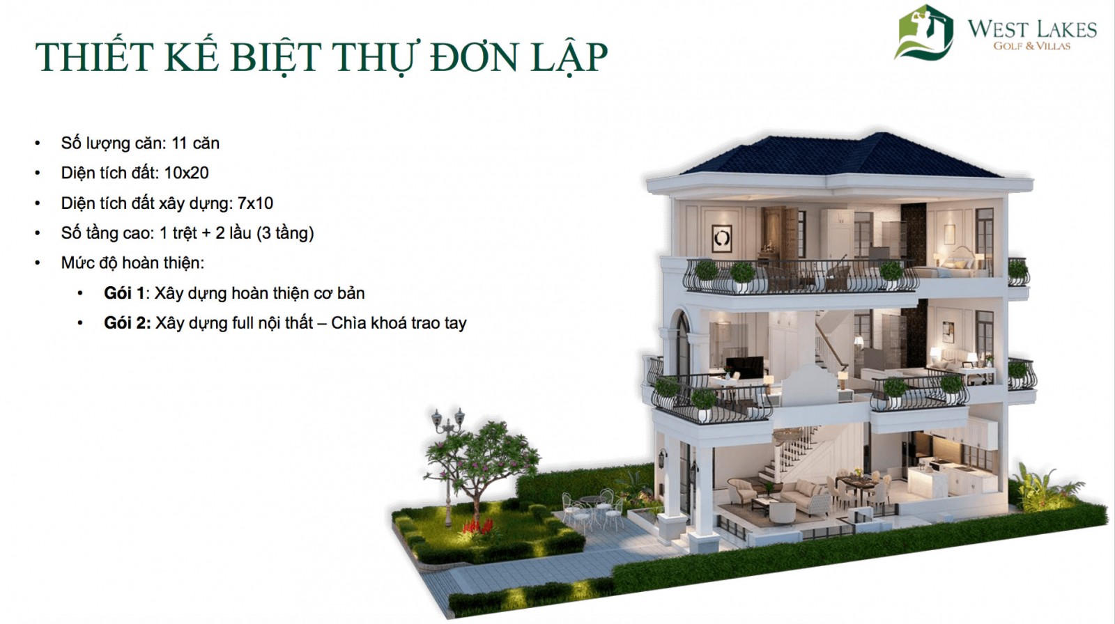 Biệt thự Đơn lập: 7,5 tỷ / căn biệt thự12×20, diện tích xây dựng 320 m2