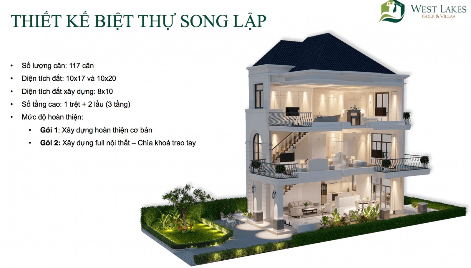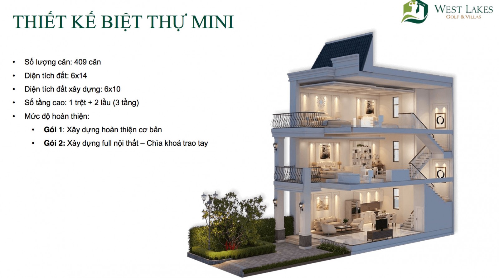 Biệt thự Song lập: 6,1 tỷ / căn biệt thự 10×18, diện tích xây dựng 290 m2